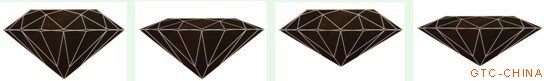 正常切工 冠角减小 亭深变浅 冠角减小、亭深变浅