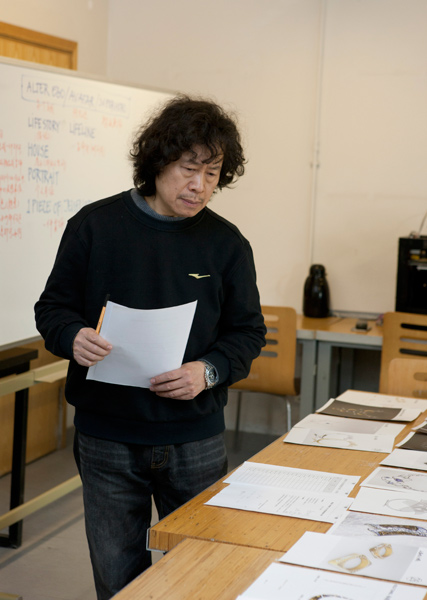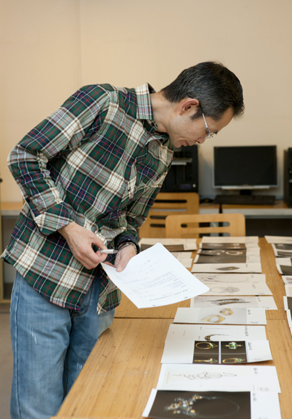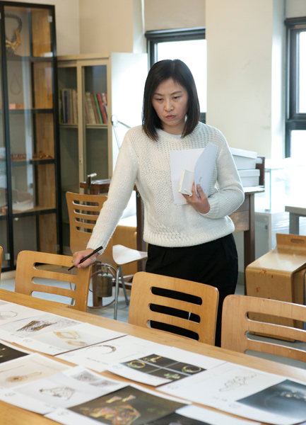 中央美术学院教授、硕士生导师、首饰专业创建人、学术主任滕菲在挑选作品