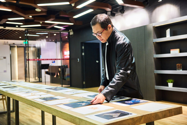 周大福集团创作总监林鸿胜正在认真评选作品