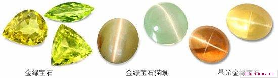 金绿宝石的英文名称为Chrysoberyl。金绿宝石具有猫眼效应的品种叫猫眼石;具有变色效应的品种叫变石,二者都属于高档宝石,都是极为罕见和贵重的。 在金绿宝石中,可能最为人知的品种是猫眼宝石,它以其丝状的光泽,和锐利的“眼”而成为自然界中最美丽的宝石。在亚洲,猫眼宝石常被当作好运气的象征,深受人们的青眯。亚历山大石,又称为变石,它与珍珠及月光石交替作为六月的生辰石。之所以称它为变石,是因为在不同的光线下观察到的宝石颜色不同,这是非常有趣的宝石,许多诗人、作家对它描述、赞誉,称它是:“白昼里的祖母绿,黑夜里的红宝石。 |